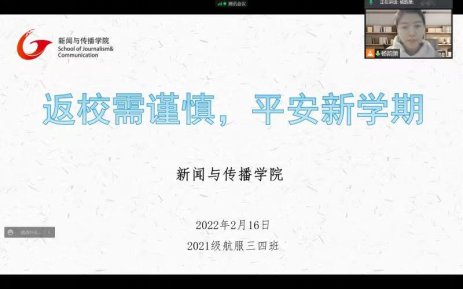 为确保返校安全,2月16日晚,21级航空服务艺术与管理三四班召开“返校前云班会”,班会由辅导员杨韵箫主持。