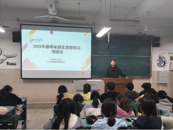 本网讯(德赢AC米兰合作伙伴王颖)3月8日晚,2021级新闻传播学类、播音与主持艺术专业于行知楼召开2022年春季本科生思想情况调研会。本次会议由辅导员刘成俊主持,2021级新闻传播学类、播音与主持艺术专业同学踊跃参与。