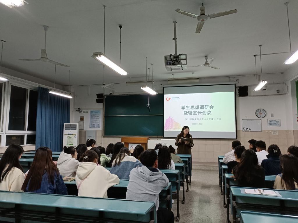 本网讯(文/刘亚南图/李鑫鑫)在新学期之初,为及时了解春季同学们思想状况,研究解决同学们在思想、学习和生活等方面存在的实际问题,有针对性地做好教育管理和服务工作,3月9日晚,21级航服1、2班在2050503教室开展新学期思调暨寝室长会议,辅导员张雁主持,全体班委和寝室长参会。