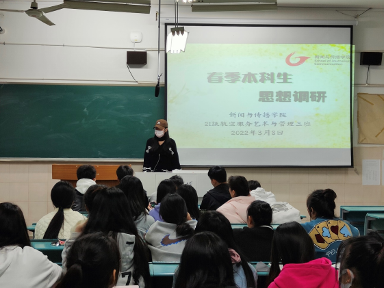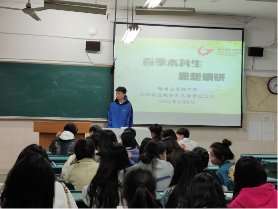 3月9日星期三晚19点,杨韵箫老师和航服3班全体同学在2050505室开展了“春季本科生思想调研”主题班会。