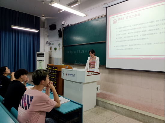 会上,大家共同观看了《青春不是挥霍的筹码》《别让“我以为”变成“我后悔”》《逝去的幸福》等禁毒宣传公益短片,让同学们直接认识到毒品的危害。各班思政委员还通过小故事、PPT展示等方式,向同学们介绍毒品的概念分类,生理危害,心理危害以及如何预防吸毒等方面的知识。