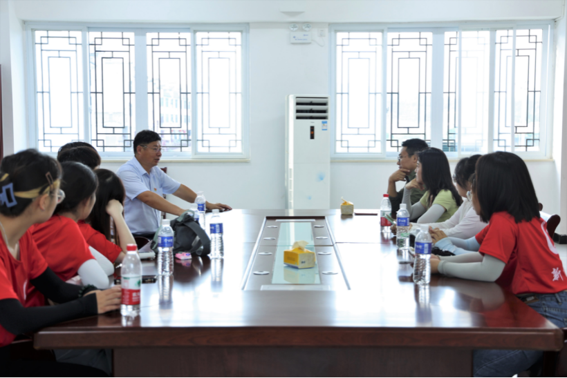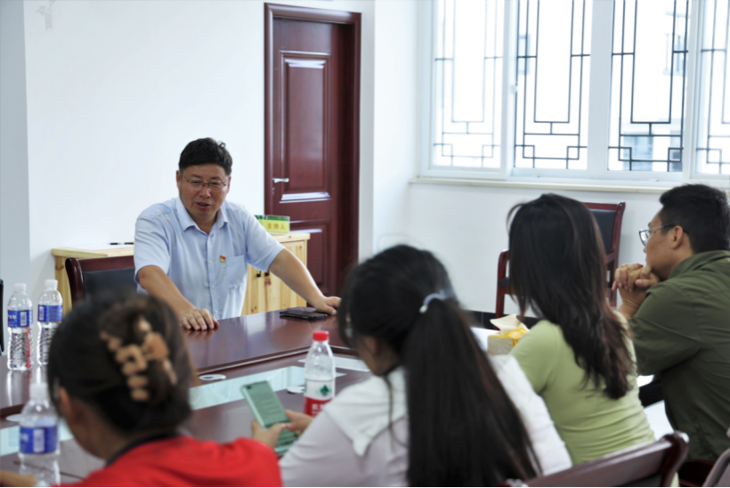 在社区二楼活动会议室姚顺武和队员们围坐在一起,对同学们来到深渡镇进行暑期社会实践调研表示热烈欢迎,并结合习近平生态文明思想对如何更好地进行流域治理、发展新安江模式,以及大茂社区在谋求绿色发展的道路上快速前进的工作举措等问题进行初步介绍。