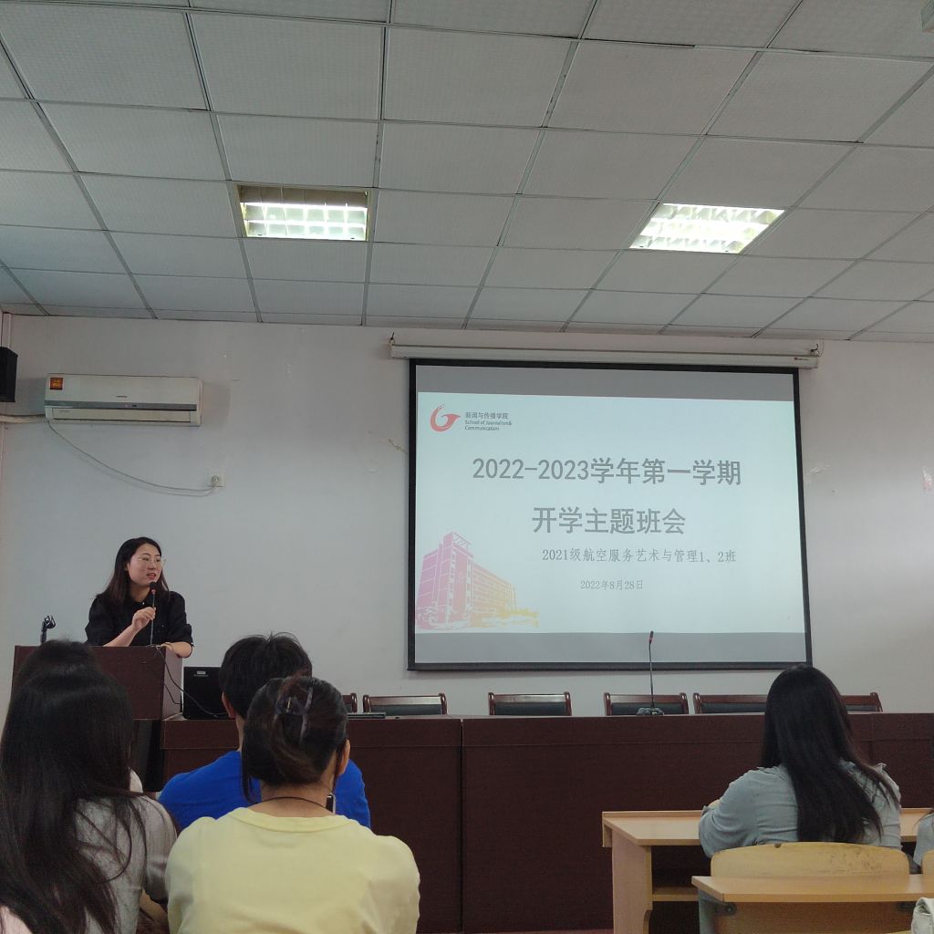 本网讯(文/洪迅洁 图/胡欣雅)8月28日下午,21航服1、2班在学院四楼会议室召开开学班会,会议由辅导员张雁主持。