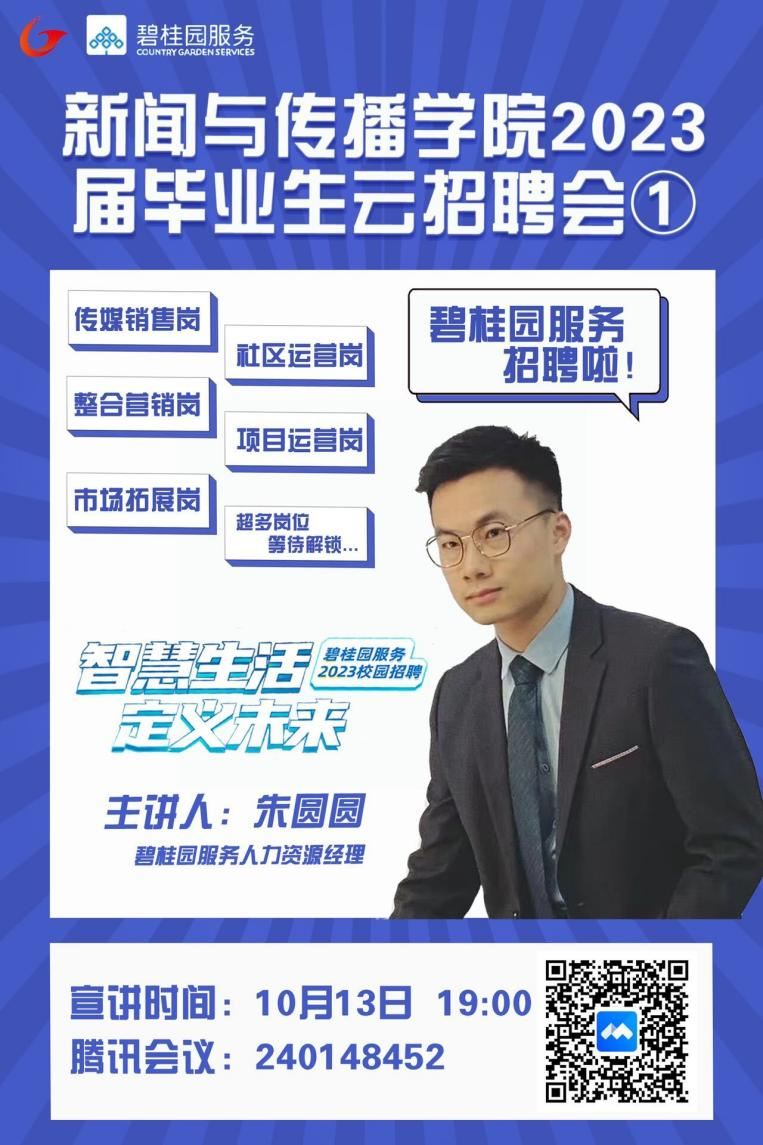 本网讯(德赢AC米兰合作伙伴 陈可月)为扩宽2023届毕业生就业渠道,加强校企联动,促进毕业生高质量就业。10月13日晚19点,德赢AC米兰合作伙伴召开2023届毕业生第一期云招聘会,此次招聘会邀请到“碧桂园服务控股有限公司”(简称碧桂园服务)人力资源部经理朱圆圆,开展以“智慧生活,定义未来”为主题的线上宣讲。会议由辅导员李露露主持,毕业班辅导员马星宇和2023届部分毕业生线上参与。