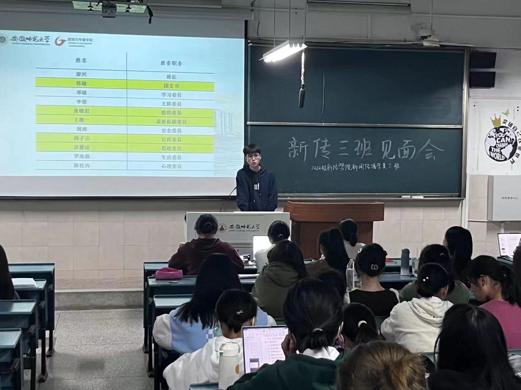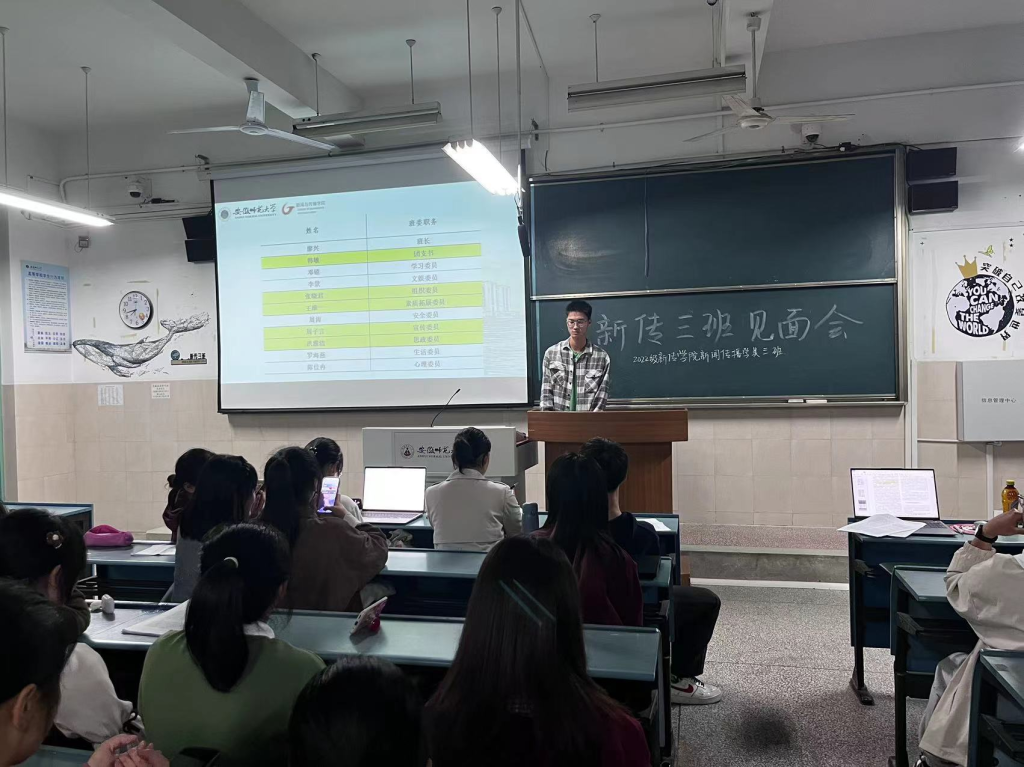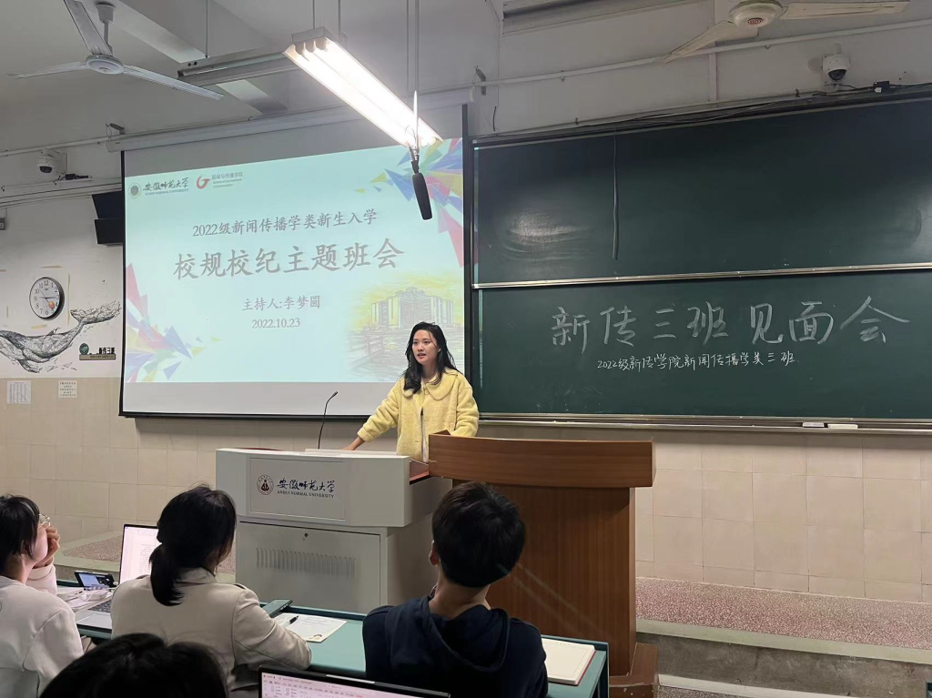 10月23日晚,在2050304教室召开了班级见面会暨校规校纪主题班会。班会由辅导员李梦圆主持,全体新闻传播学类三班学生参加。