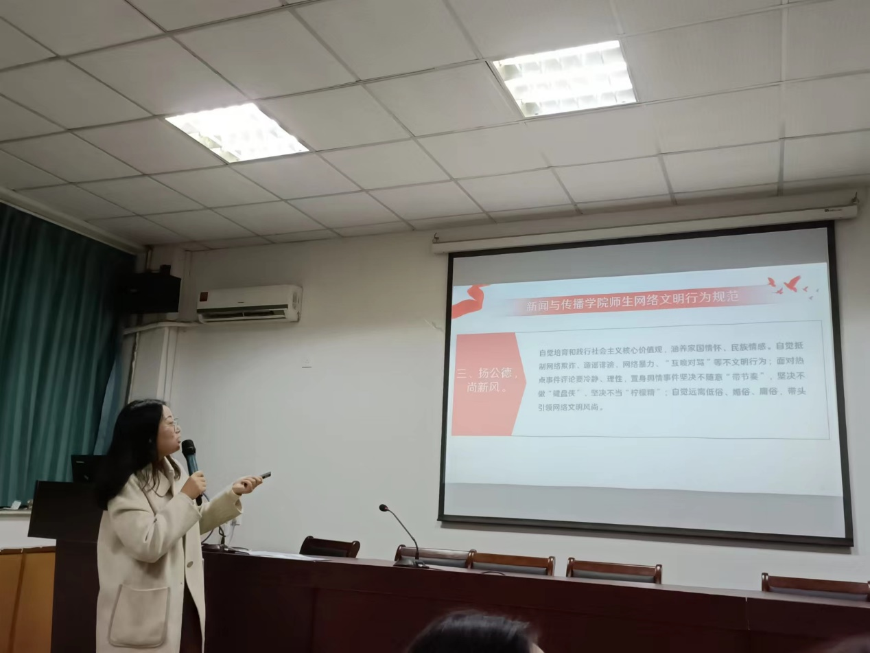张雁指出,网络文明素养是新时代大学生的应有之义,她倡导大家应充分利用网络资源,在内容、形式和技术上提升自我,不做所谓的“柠檬精”、“网络喷子”、“键盘侠”或“杠精”。