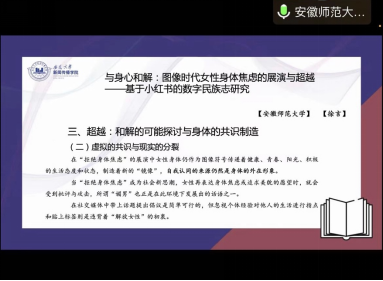 研究生论坛中的硕士分论坛共设7个平行论坛。徐言同学在“硕士分论坛三:媒介·技术与人文关怀”对自己的论文《与身心和解:图像时代女性身体焦虑的展演与超越——基于小红书的数字民族志研究》进行了宣讲。