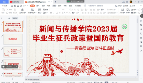 吴青山在总结动员讲话中对王伟受邀作经验分享表示感谢,他深入阐明了大入伍对于大学生自身塑造和锻炼成才的重要意义,鼓励同学们应对征兵入伍进行积极思考,勇敢尝试军营这一条成长成才的途径,对有关优待政策进行了深入说明,勉励毕业生同学积极把握好春招与秋招机会,在携笔从戎投身军营中发挥新传专业优势实现报国之志。