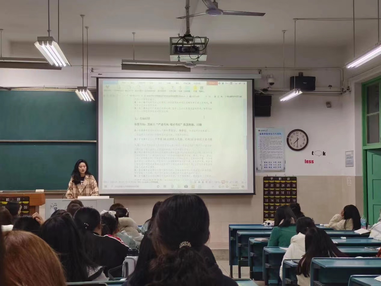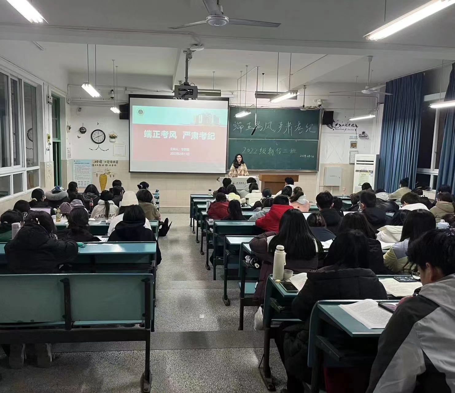 为端正考风,严肃考纪,营造诚信考试的良好氛围。2月13日-2月15日晚,辅导员李梦圆面向2022级新传大类、播音与主持艺术专业全体同学召开风考纪主题班会,深入学习了诚信考试的规章制度。