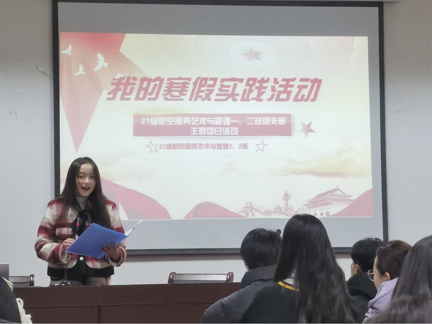 本网讯 (文/顾恒洋 图/黄海玥)薪火相传,踔厉奋发。为深入学习贯彻党的二十大精神,2月24日晚7点,21级航服1、2班团支部在学院四楼会议室召开“我的寒假故事”分享会,引导同学们将青春之理想、青春之奉献、青春之担当融入青春奋斗中,在学思践悟中牢记青春使命。会议由团支书顾恒洋主持。