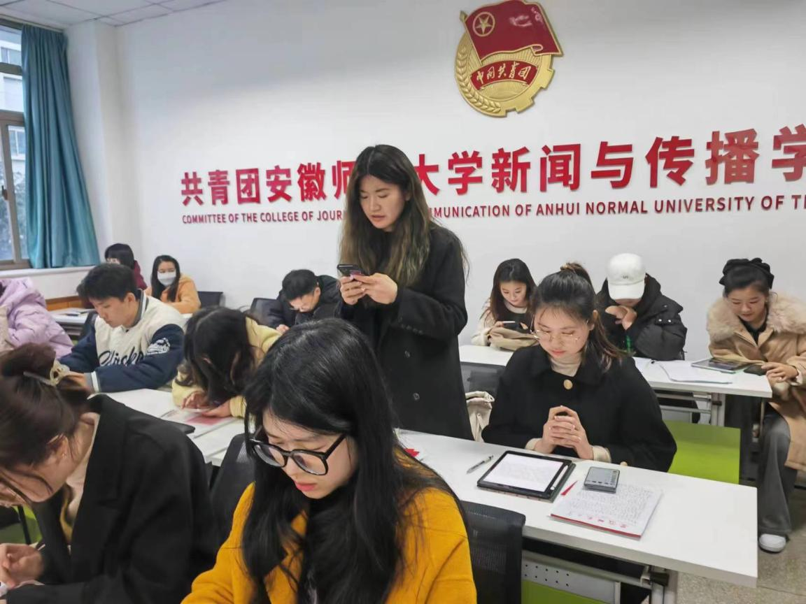 沈超颖同志结合亲身经历谈了理论学习感想:青年者,国家之魂。青年的命运,从来都与时代紧密相连。广大青年一定要把个人奋斗融入中华民族伟大复兴的时代洪流,一定要有理想、敢担当、能吃苦、肯奋斗,让青春在全面建设社会主义现代化国家的实践中绽放出绚丽之花。学院最近开展的辩论赛对我们就是很好的锻炼,支部上学期组织的繁昌县中分村实践考察活动,就是非常珍贵的实践机会。在社会实践中,我们提升了辩证思考的能力,积累我们的专业知识,锻炼我们的语言表达能力,在读万卷书的同时行万里路。今后,我们会以习近平总书记关于新闻舆论工作重要论述为指导,更积极地参与各项社会实践,理论联系实际,广泛进行社会调研,亲身亲眼去了解和传播党和国家的大政方针,细心观察,深入了解与之紧密相连的巨大发展变化。打好专业基础,乐于社会实践,为中华民族的伟大复兴贡献出全部力量。