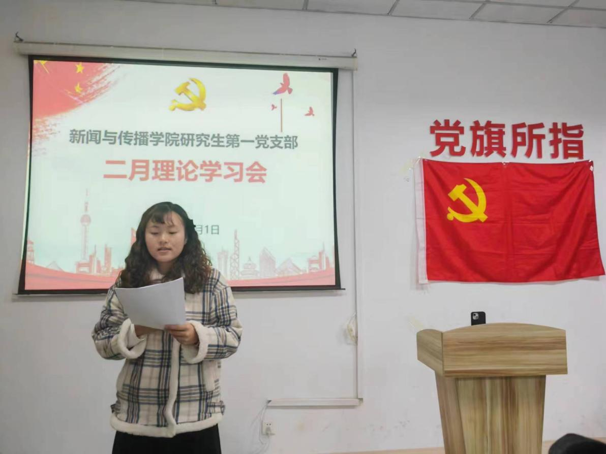 王可同志表示,2022年10月16日,习近平总书记在中国共产党第二十次全国代表大会上的报告中特别指出要“牢牢掌握党对意识形态工作领导权,全面落实意识形态工作责任制,巩固壮大奋进新时代的主流思想舆论。加强全媒体传播体系建设,塑造主流舆论新格局。”作为研究生理论学习研究小组的成员,我们应当时刻牢记党的二十大报告中习近平总书记关于加强全媒体传播体系建设,塑造主流舆论新格局的论述和以人民为中心的发展思想,一定要牢牢掌握党对意识形态工作领导权,不断巩固壮大奋进新时代的主流思想舆论,同人民群众想在⼀起,干在⼀起,审时度势,不断了解人民群众的需求,立足中国国情和社会热点讲好中国故事,传播中国声音,为中华民族的伟大复兴和社会科学的发展作出贡献。我们德赢AC米兰合作伙伴的研究生党员要不断提升政治理论水平与专业素养,身体力行地不断去影响和带动周围的同学共同进步,实现精神上的“共同富裕”。