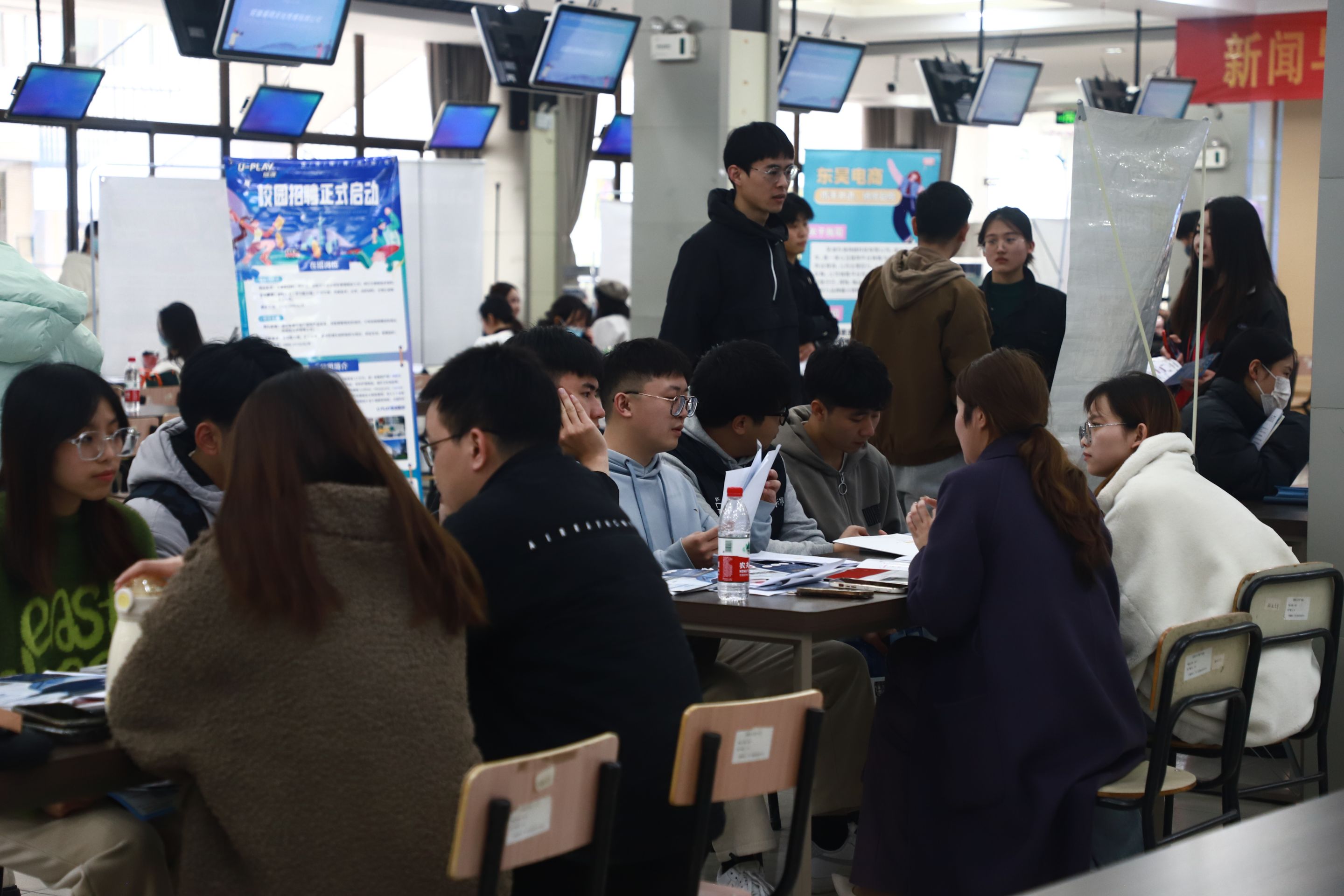 招聘现场人流涌动。不少毕业生带着精心准备的简历穿梭于招聘展位前,并在心仪的用人单位展位前驻足,向招聘负责人咨询用人单位情况,企业招聘负责人也耐心地为他们解答疑问。19级摄影专业的王博宇表示:“平时自己找工作很多都是专业不对口,这次有不少是专门针对我们专业的岗位,我觉得还是非常激动的,希望可以找到自己心仪的岗位。”也有不少同学在短短三个小时内就收到了多家企业的邀约,19级新闻学专业的刘莹莹说:“这次招聘会所涉的岗位种类还是比较丰富的,我目前比较感兴趣的是宣城日报社的官方媒体平台。”除了应届毕业生,招聘现场还有不少大二、大三的同学提前来感受求职氛围。