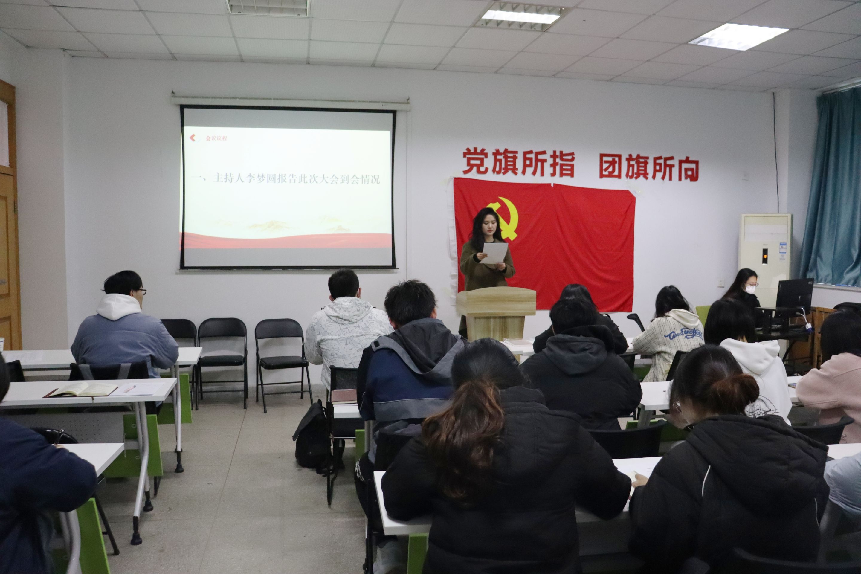 会上,李梦圆介绍此次大会到会情况,陈绯和崔佳琦两位同志依次上台宣读入党志愿书,向组织和全体支部成员汇报其思想、学习、生活等方面的情况。在入党志愿书中,两位位都表述了自己对党组织的深刻认识。与会正式党员本着客观、公正的原则对申请转正的预备党员进行民主评议,经过讨论和表决,大会全体成员一致同意接受陈绯和崔佳琦为预备党员,后期报给党委谈话审批。
