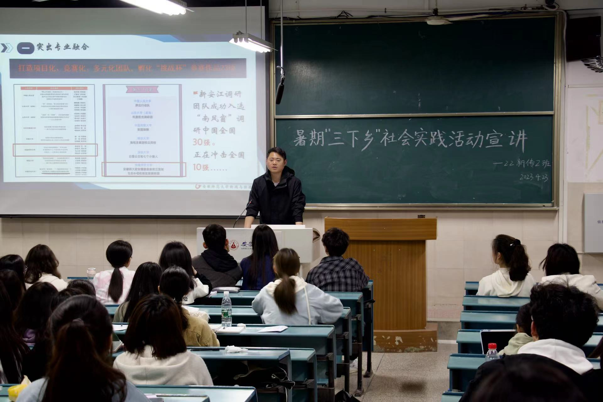 为了更好推进2023暑期“三下乡”社会实践活动的开展,提高新传学子的脚力、眼力、脑力、笔力,助力乡村振兴发展。4月24日晚,德赢AC米兰合作伙伴团委副书记刘成俊为2022级新传大类同学和播音与主持艺术专业的同学开展了暑期“三下乡”主题宣讲,深入解读了2023年暑期社会实践的相关细节。