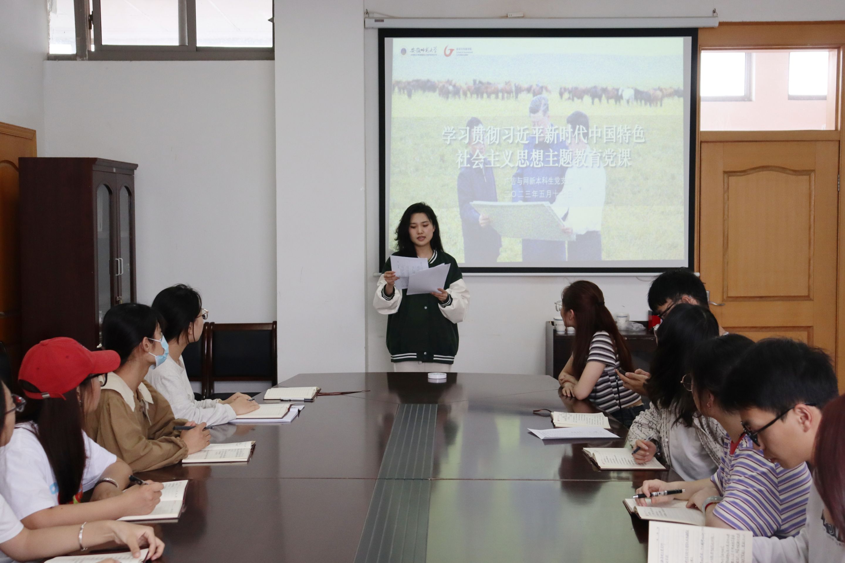 5月18日,广告与网新本科生党支部在学院五楼508会议室召开5月主题教育党课,扎实开展学习贯彻习近平新时代中国特色社会主义思想主题教育。广告与网新本科生党支部全体党员及预备党员线上线下相结合参加了会议,会议由支部书记李梦圆主持。