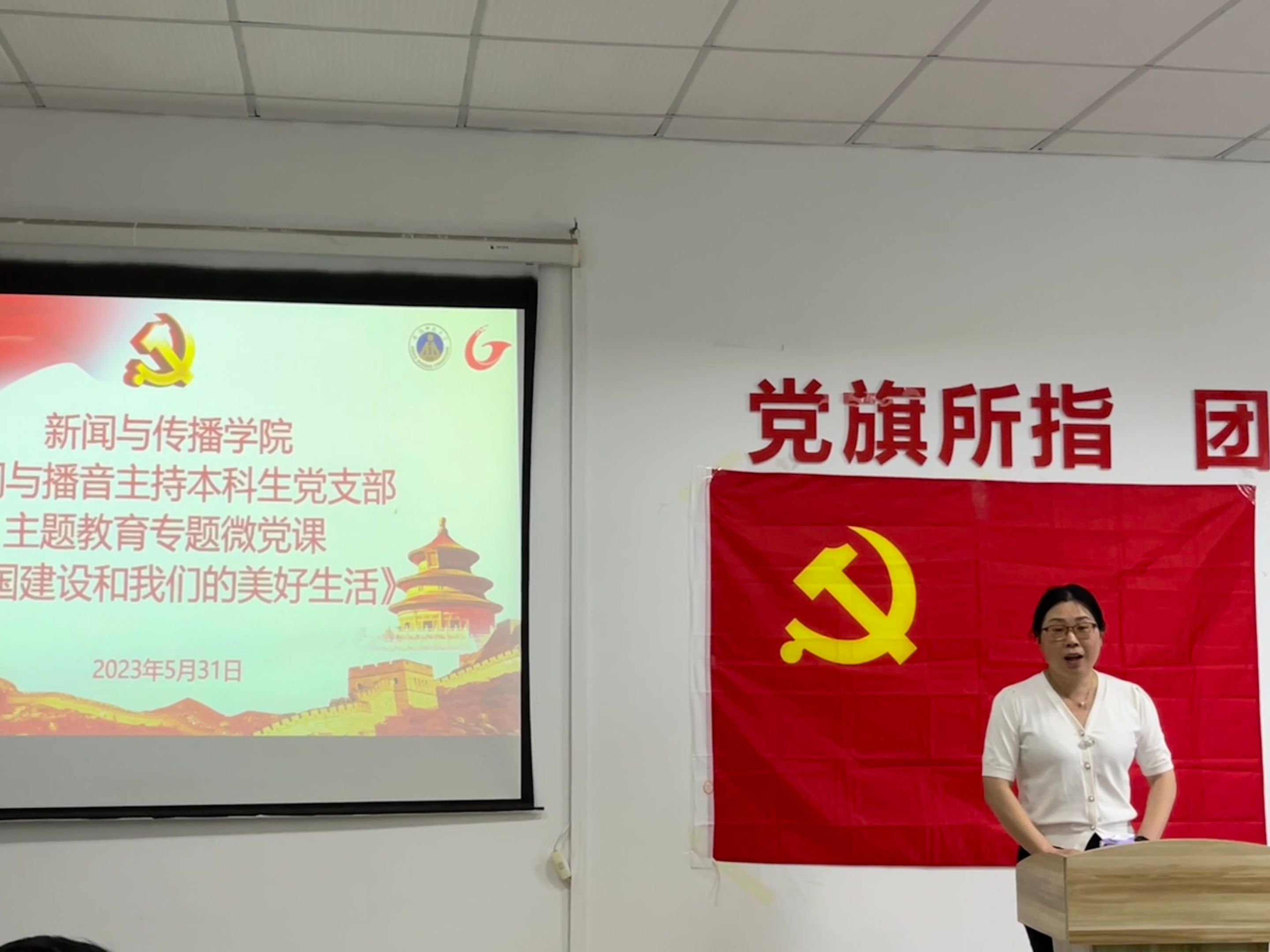 随后支部书记马星宇,围绕习近平总书记就加强我国国际传播能力建设发表的重要讲话上了微党课。他表示,作为新传学子,大家要按照习近平总书记所指出的“讲好中国故事,传播好中国声音,展示真实、立体、全面的中国”要求,努力学习、带头实践,提升专业实践能力,用自己的作品讲好安徽故事、传播中国声音。马星宇呼吁同学们多加关注、深入学习习近平总书记关于新闻舆论工作的重要论述,并与中国新闻史特别是新中国建立之初,毛泽东、刘少奇对新华社工作的指示结合起来一起学习领会,从理论上搞清楚中国共产党从国际宣传、对外宣传、对外传播、国际传播概念运用的历史演讲。他表示,作为中共党员同时是未来的新闻传播工作者,更要加强此类理论学习并贯彻到实践工作当中。同时,他还对刚入党与转正的同学提出几点希望,即处理好内与外的关系、群与已的关系、学与做的关系和理与实的关系,希望牢记党员身份和入党誓词,明晰做与不能做、做与抢着做要求,真正做到担当、负责、作为。