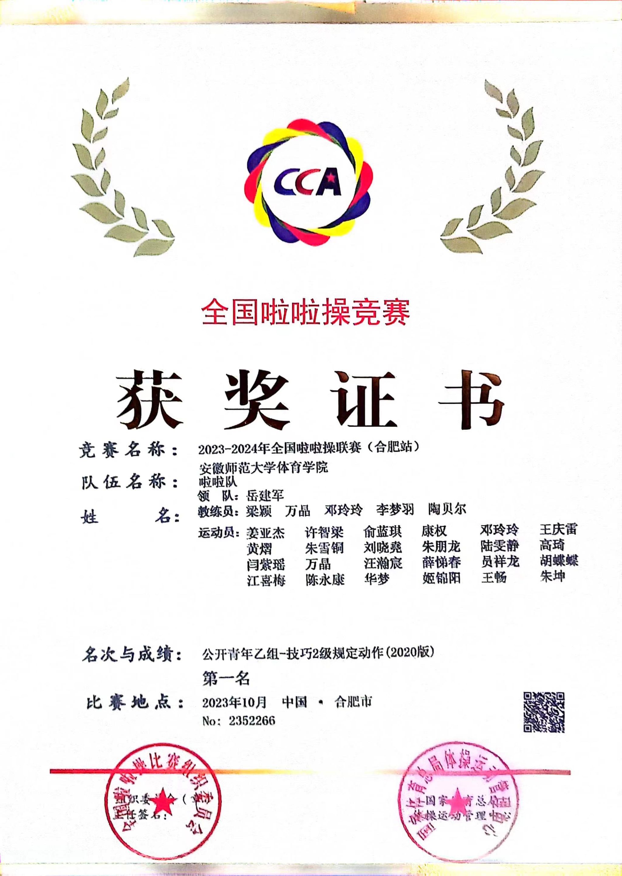 本网讯(德赢AC米兰合作伙伴)2023年10月,2021级航空服务艺术与管理专业的姜亚杰同学在2023-2024年全国啦啦操联赛中崭露头角,荣获公开青年乙组技巧二级的冠军。
