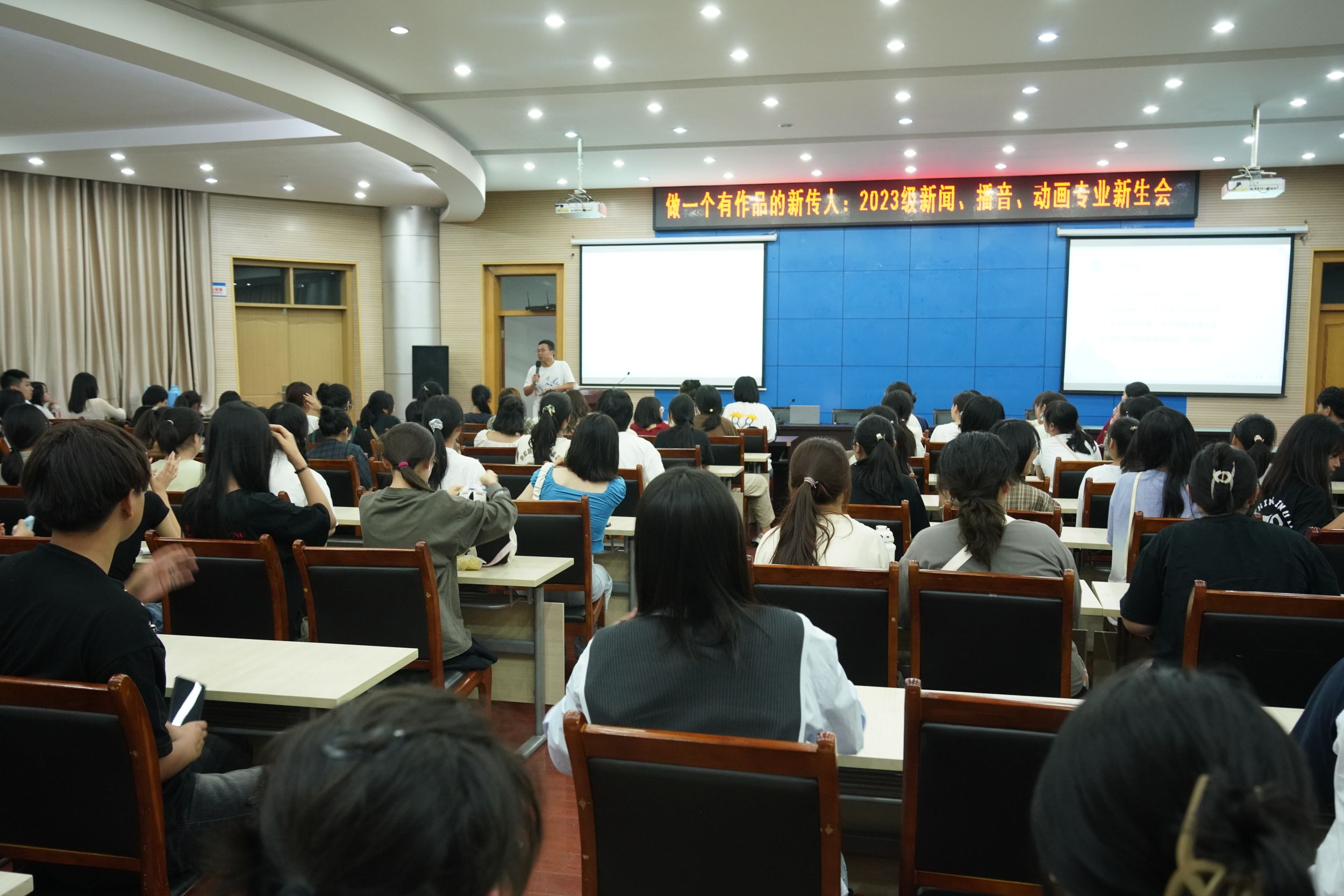 大学生活该如何规划?师大和新传是怎样的大学和学院?芜湖又是怎样的城市?学习和生活的底线和高线是什么……对于大学新生而言,背上行囊远离家乡走进校园一切都是陌生的,对即将到来的学习、生活充满了好奇与疑问。为给新生答疑释惑,尽快转变角色身份,了解校情校貌、校纪院规,9月2日晚,德赢AC米兰合作伙伴辅导员马星宇为2023级新闻、播音、动画专业的近200名新生开展了题为“做一个有作品的新传人”为主题的新生班会。