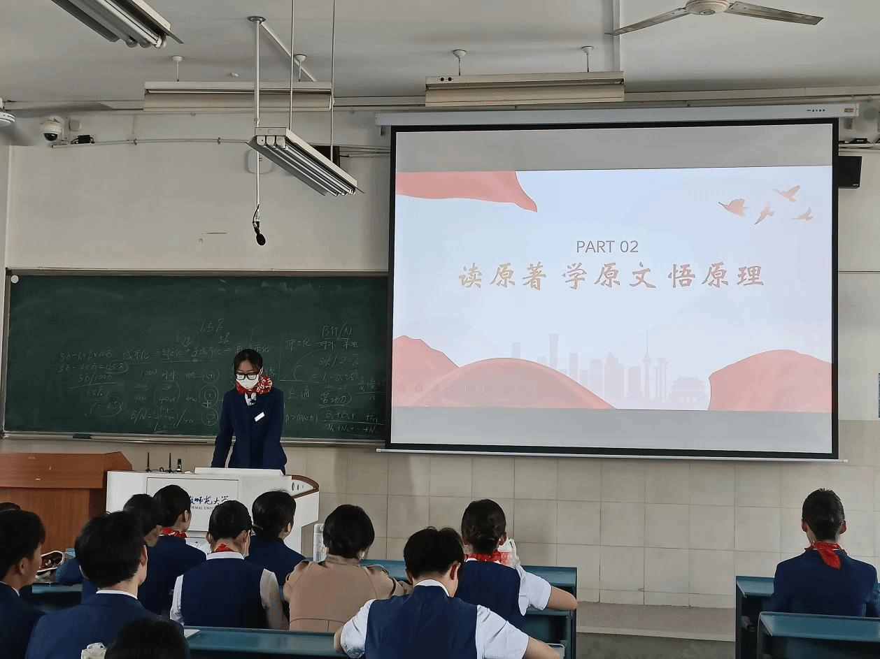 团员李春佳带大家读原著、学原文、悟原理。通过读《习近平著作选读》,感悟青年学生要牢记“中国共产党人的初心和使命,就是为中国人民谋幸福,为中华民族谋复兴”。团员刘静怡带大家进行理论学习,倡导同学们树立共产主义远大理想,坚定中国特色社会主义共同理想,坚定听党话、跟党走的政治信念,在强国建设、民族复兴的历史潮流中确立正确的人生目标,为一生的奋斗奠定基石。团员李雪、梅婷展开感悟心得分享,号召大家要把加强理论学习贯穿始终,强化理论武装,组织团员和青年全面学习领会党的创新理论的科学体系、核心要义、实践要求,争做有理想、敢担当、能吃苦、肯奋斗的新时代好青年。