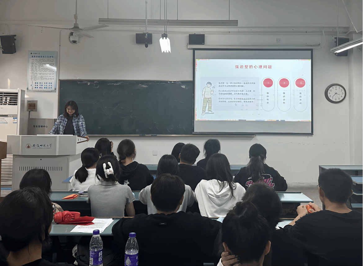 本次班会从四部分展开。邢紫晗首先介绍了近期发布的《2023年度中国精神心理健康》蓝皮书的具体内容,接着例举了几项常见的心理问题并表明形成这种心理问题的原因,随后就如何处理心理健康问题以及面对心理健康问题给予了相关解决办法。最后,邢紫晗又介绍了学校心理预约的途径,并鼓励同学遇到问题时积极寻求心理帮助。