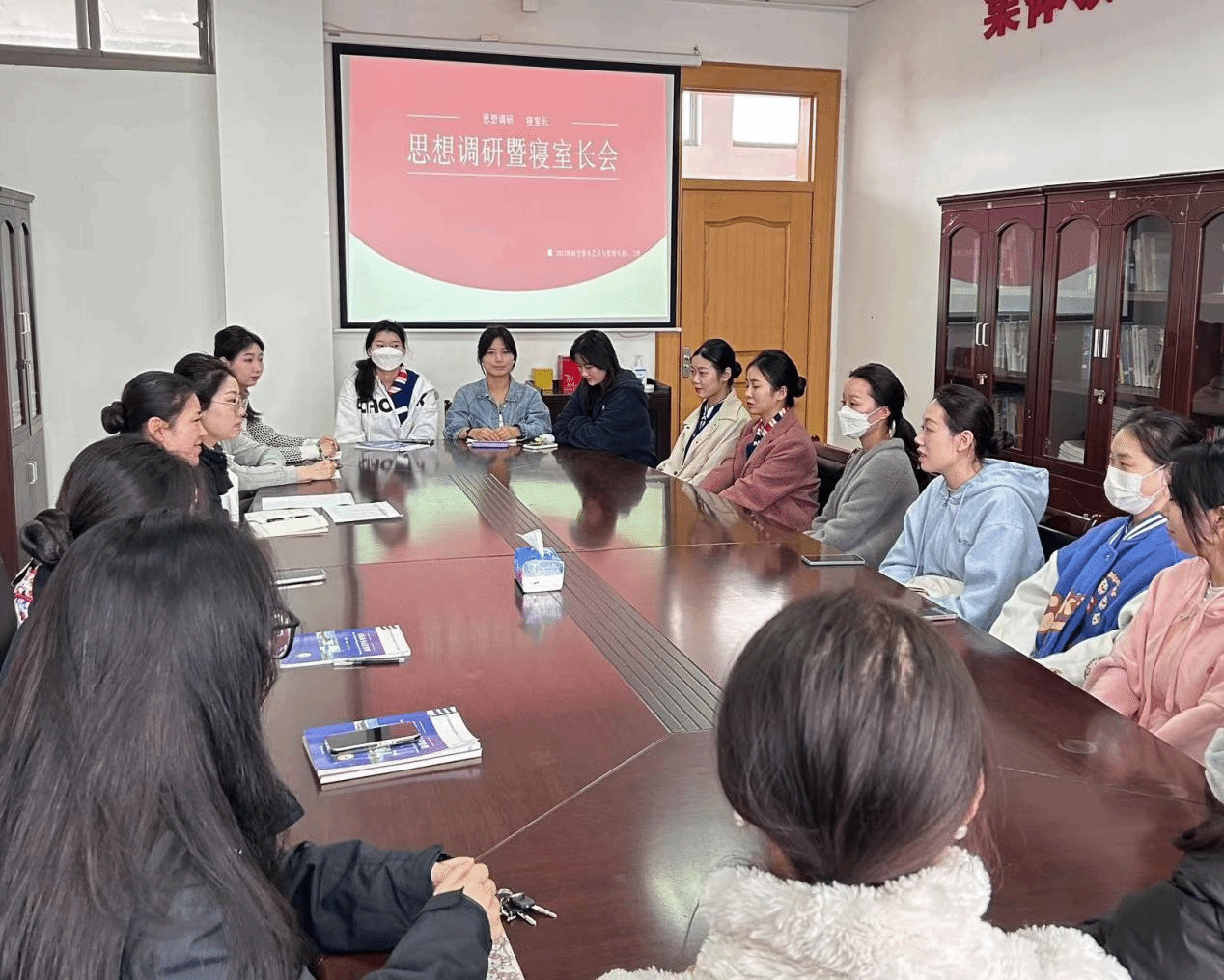 本网讯(文图/方欣)为进一步深入了解学生思想建设工作,规范学生的生活学习能力,走进每一个寝室去了解每一位同学。近期,21航服1、2班通过召开寝室长会进行思想调研,会议由辅导员张雁老师主持。