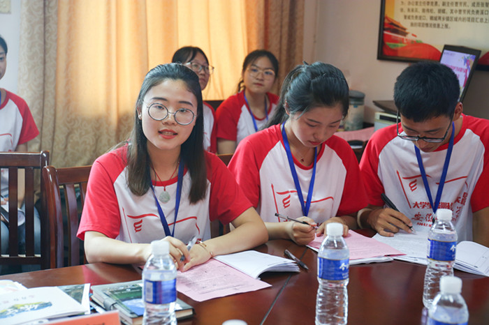 座谈会上,参会学生踊跃发言。2016级广告学专业徐敏可以自身情况为例谈了自己两次参加社会实践不一样的感受和看法,她说:“大一更多的是作为学妹在学习、吸收学长学姐们的优秀之处,今年在休宁县溪口镇,我更多的是承担和责任,并给学弟学妹们发挥带头作用,将这份暑期实践的精神传承下去。”