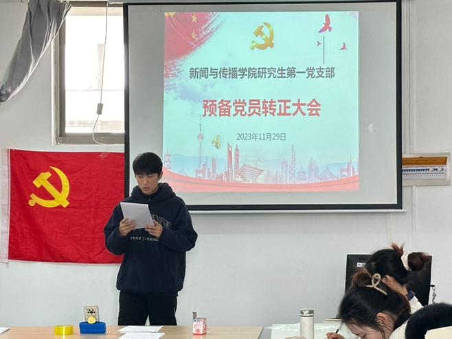 2023年11月29日下午,德赢AC米兰合作伙伴研究生第一党支部在3号实验楼404教室召开关于王少强同志的预备党员转正大会。会议由支部副书记杨韵箫主持。
