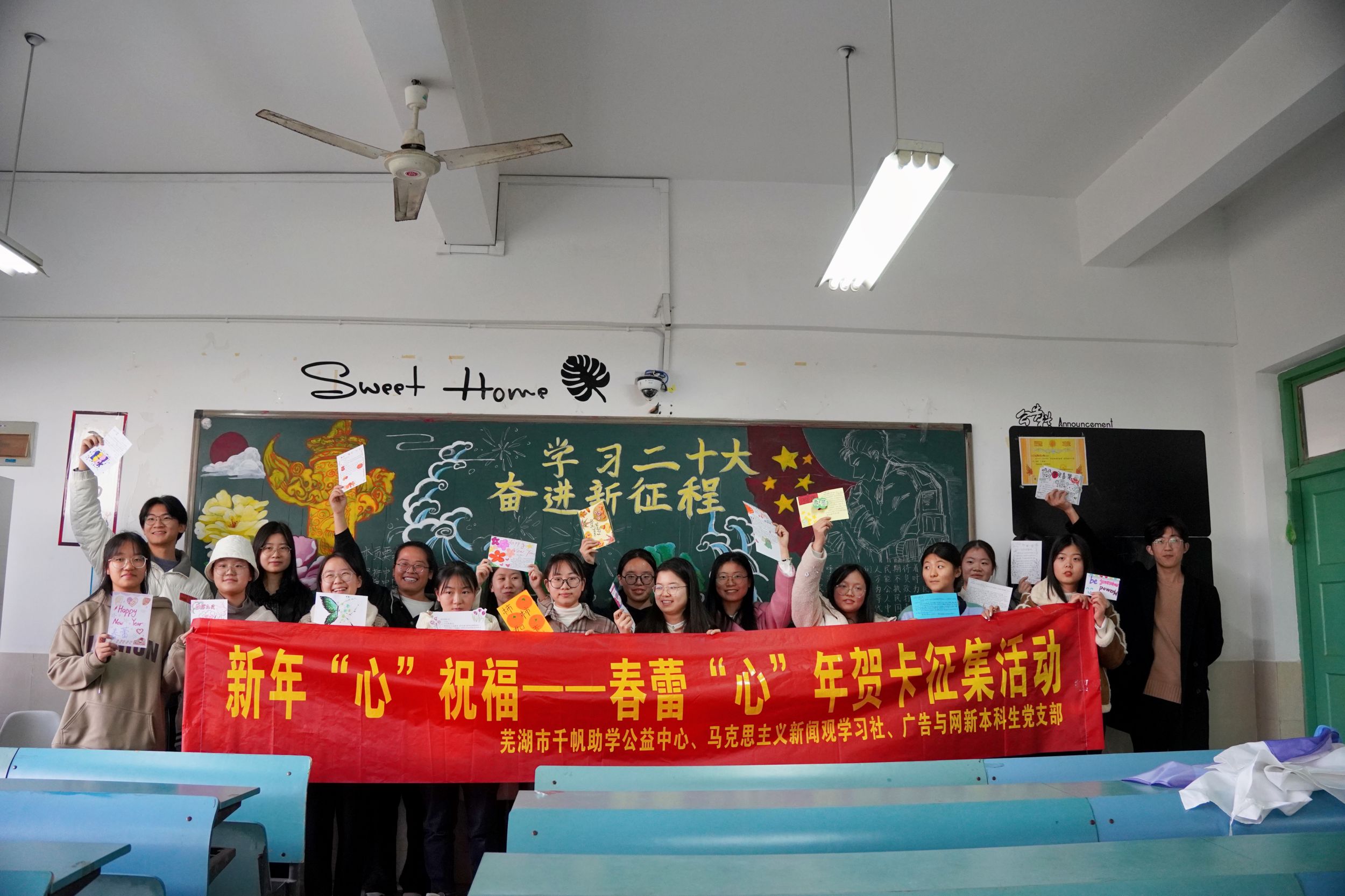 12月6日下午,德赢AC米兰合作伙伴广告与网新本科生党支部、马克思主义新闻观学习社联合芜湖市千帆助学公益中心共同举办了春蕾“心”年贺卡征集活动。同学们亲手制作贺卡,用真挚的情感和温暖的语言,给“春蕾”女孩们送去远方的深沉祝福。