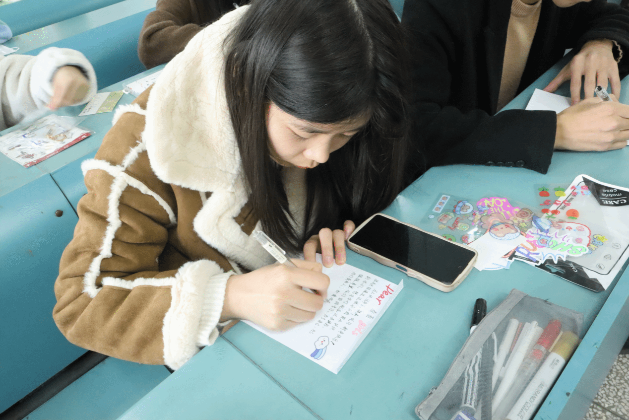 活动尾声,工作人员收集了同学们制作的贺卡,之后,这些贺卡将妥善保管并转交给“春蕾”女孩们,陪伴她们迎来崭新的一年。每一句祝福、每一份关怀都将传递到“春蕾”女孩们的心中,让她们感受到社会的温暖和爱意。