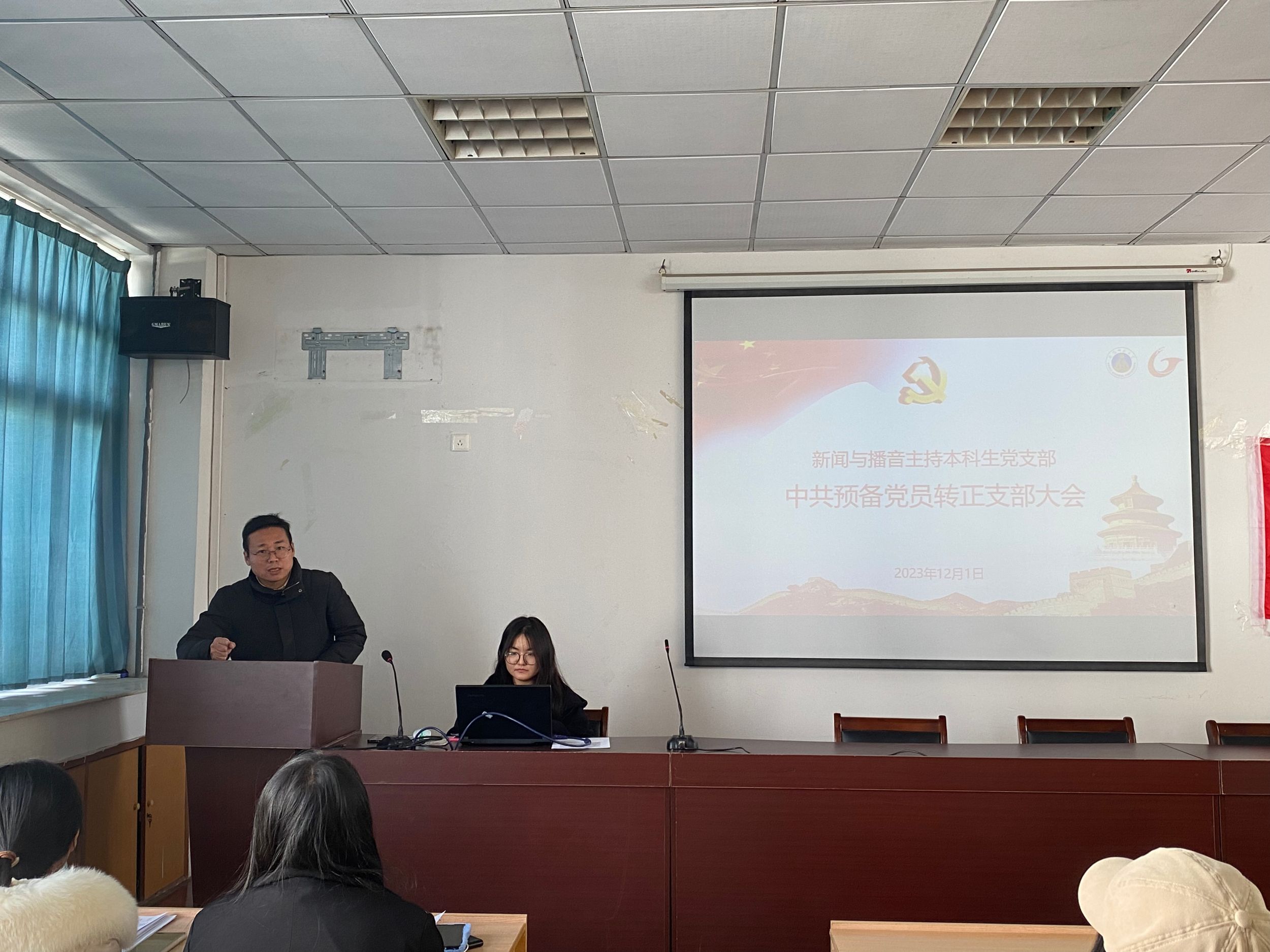 12月1日,新闻与播音主持本科生党支部在学院楼404会议室召开了接受孙羽等8名预备党员转正为中共正式党员、接受陈潇等10名发展对象为中共预备党员的支部大会。会议由党支部书记马星宇老师主持。