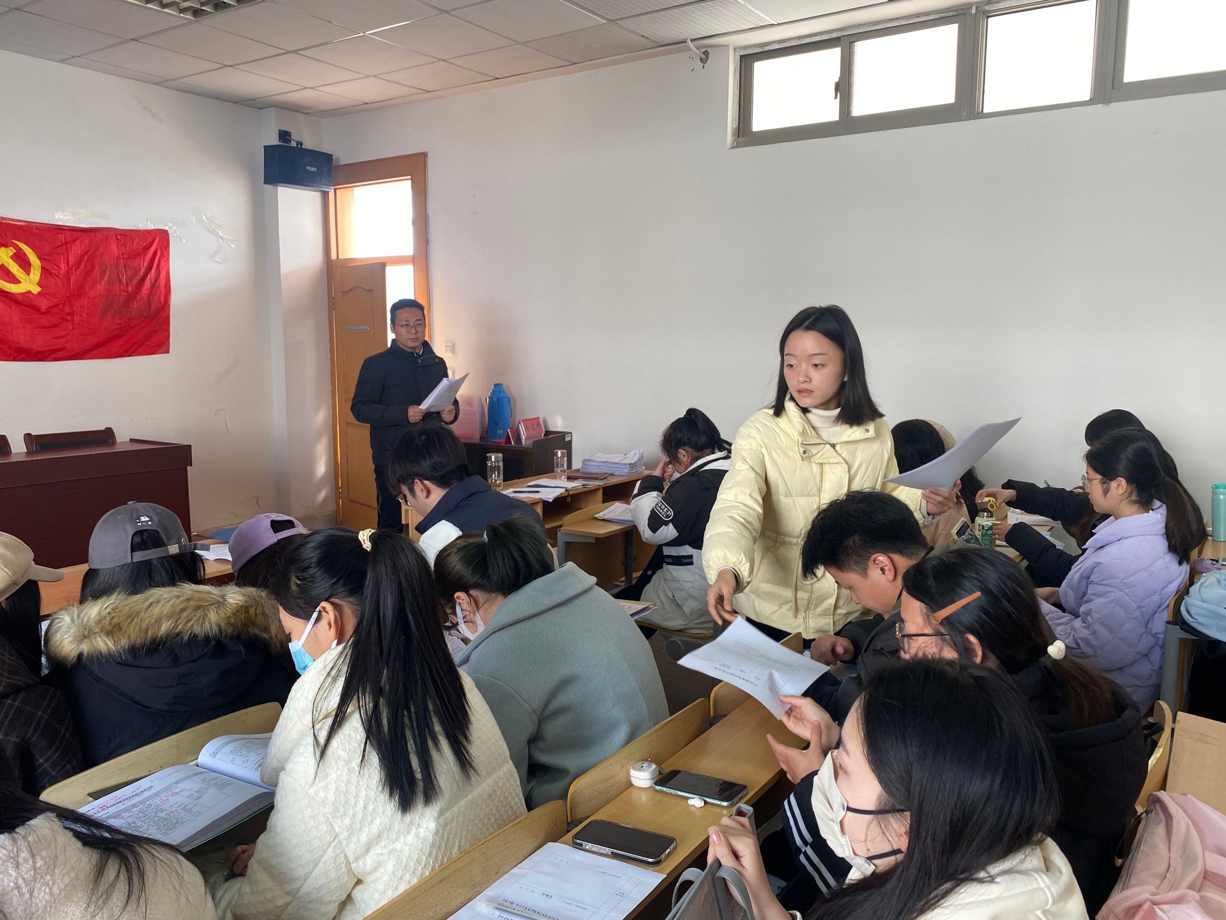 在马星宇老师介绍了会议流程后,随着国际歌的奏起,支部大会正式开始。本次被接收为预备党员的魏晓雪、毛心如等10名同学分别结合自己发展期间各项具体经历,详细汇报了自身的进步与不足。经入党介绍人介绍以及王涵、徐思凡等与会党员讨论认为,这10名同学均有坚定的政治立场,能够用党员的标准要求自己,符合预备党员的标准。支委会介绍了上述同学政审情况,经现场所有正式党员无记名投票(因故缺席党员会前提交了书面意见),一致同意接收魏晓雪等10名发展对象为中共预备党员。
