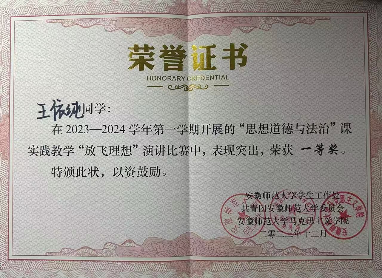 最终,我院王依纯同学获得本次“放飞理想”主题演讲比赛一等奖。(文/王依纯 图/董芳瑜)
