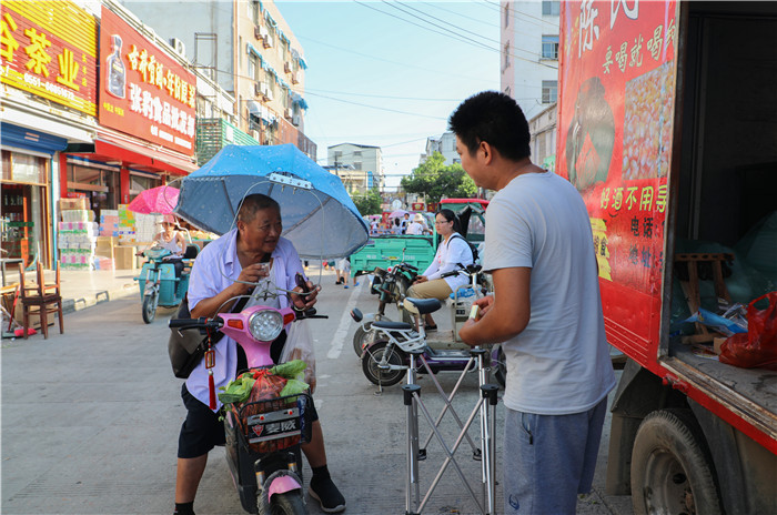 “我们是纯粮食酒,好喝不伤口,欢迎品尝。”车子上方喇叭里传来的吆喝声在清晨的菜市场里循环播放,声音清晰洪亮,夹杂着浓厚的川渝口音,在这个皖北小城这样的吆喝声并无任何违和感。人们知道,这一定是不远处的三峡移民。“陈氏粮食酒业”满满覆盖起这辆白色卡车车身,车旁边两个男人在一张小桌前吆喝着,热情地邀请大家免费品尝,路过的人不时瞥上两眼,有好奇的会走近端起桌上的塑料杯尝两口。
