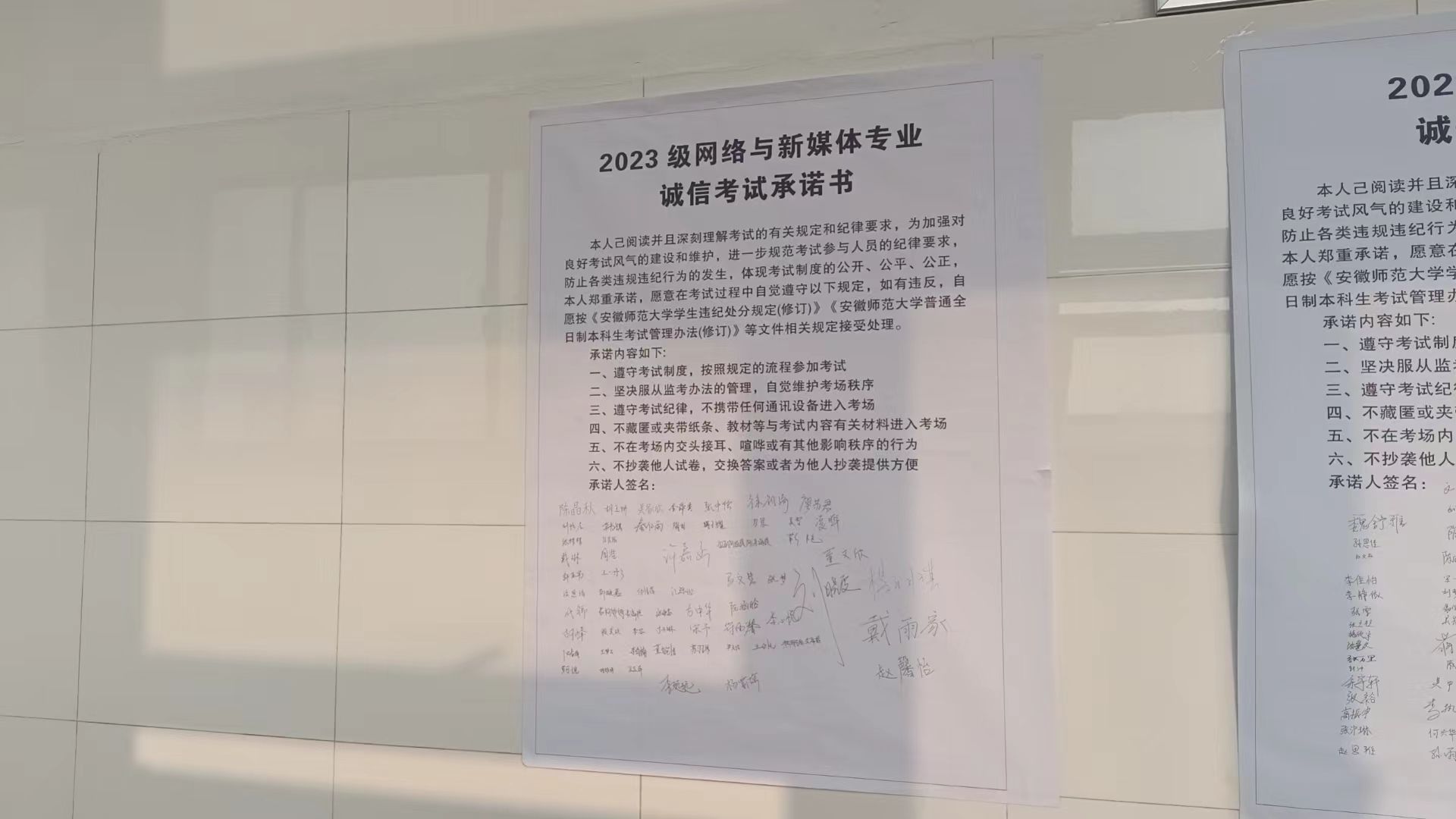 班会最后,2023级网络与新媒体专业全体同学有序签署诚信考试承诺书。