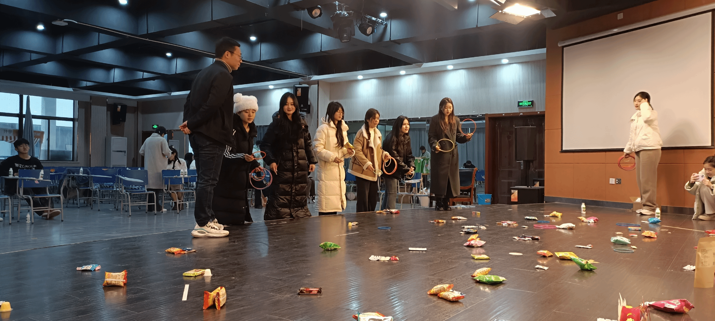 活动由班级组织委员和文体委员共同负责,共有五个环节。“不要做”挑战、听歌识曲、击鼓传花、零食套圈。