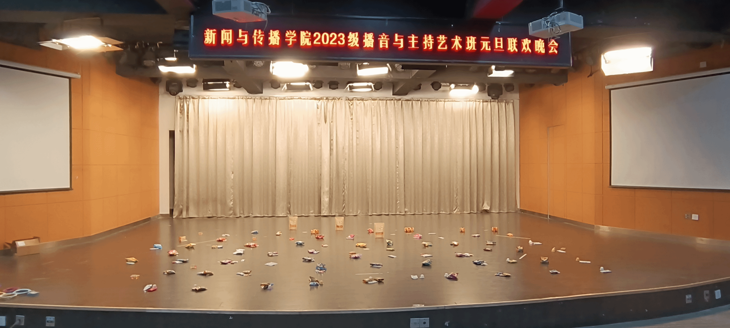 随后,在2023年的最后一天,23级播音班的同学们同样在一站式学生社区举办了“喜迎元旦”为主题的联欢晚会,辅导员马星宇老师和同学们一起度过了这重要的时刻。