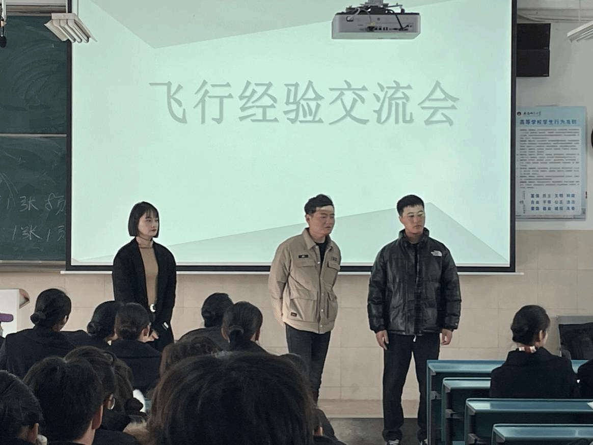 近日,华夏航空的在职飞行员和安全员来院与2021级航服学子进行有关民航面试及航空知识相关的交流活动。