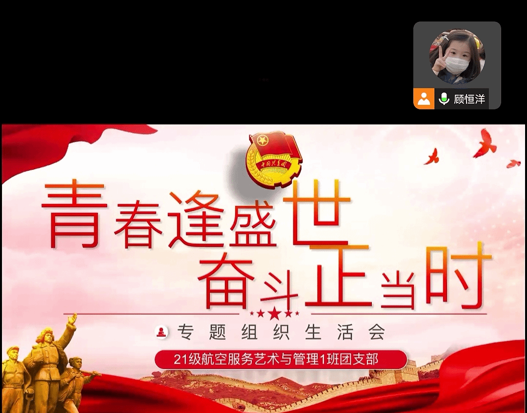 为深入贯彻党的二十大精神,紧密联系团员思想学习工作实际,交流学习体会、对标先进标准、查找差距不足、激发责任担当,21航服1、2班近日在腾讯会议召开“青春逢盛世,奋斗正当时”专题组织生活会暨团员民主评议会。全体团员和辅导员张雁参会,会议由团支书主持。