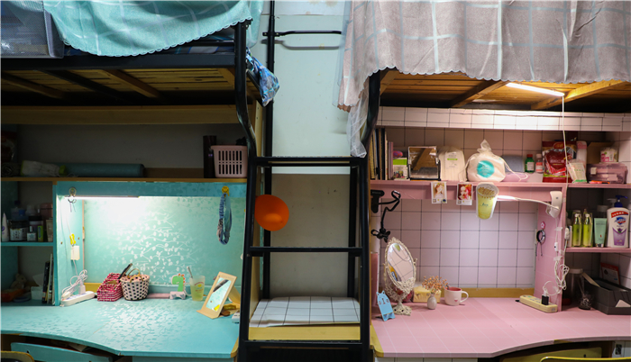 本次寝室大赛主要从寝室整体洁净度以及协调度等方面进行评分,既要体现“和谐、友善、团结”的设计理念,又要包含“和而不同”的思想。42栋508寝室运用北欧风突出整体风格,又配以手工制作和装饰材料表现个人喜好。15栋104寝室运用季节流转的特点,灵活转变寝室的布置风格,使其在创新的基础上又不乏生活气息。6栋326寝室以“家”为主题,选择深绿的壁纸给人以宁静,又通过铺设白色地毯,摆放抱枕、花束营造温馨的氛围。18栋108寝室以简约、大方为主旋律,将暖色墙纸和浅色桌面结合,打造个性空间,在男生寝室中相当出彩。