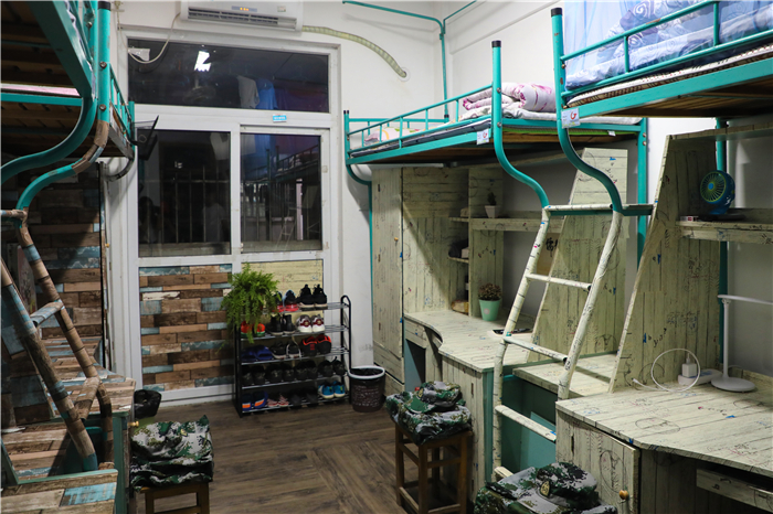 评选中也不乏学生将自己的才艺特长融于寝室设计中,而手绘字画则成为了其中装饰寝室的首选。47栋412寝室用手绘漫画的方式装点白色墙壁,给略显单调的寝室增添了几分俏皮的气息。18栋401寝室则利用自己的书法特长,书写多幅字帖挂于墙壁,黑色的毛笔字在白色墙壁的映衬下显得格外苍劲有力。另有摄影、动画专业的学生将自己的绘画小作品贴于柜门,还有不少寝室在书桌上摆放吊篮、绿植;或将寝室成员的合照挂在墙上,让寝室多了一丝家的感觉。这些微小的细节都为整个寝室的设计增添了亮点。