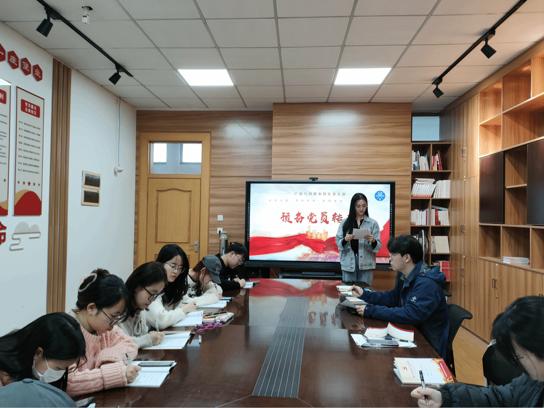 3月28日下午,广告与网新本科生党支部在学院楼507会议室召开预备党员转正暨3月理论学习会。会议由支部书记李梦圆主持。
