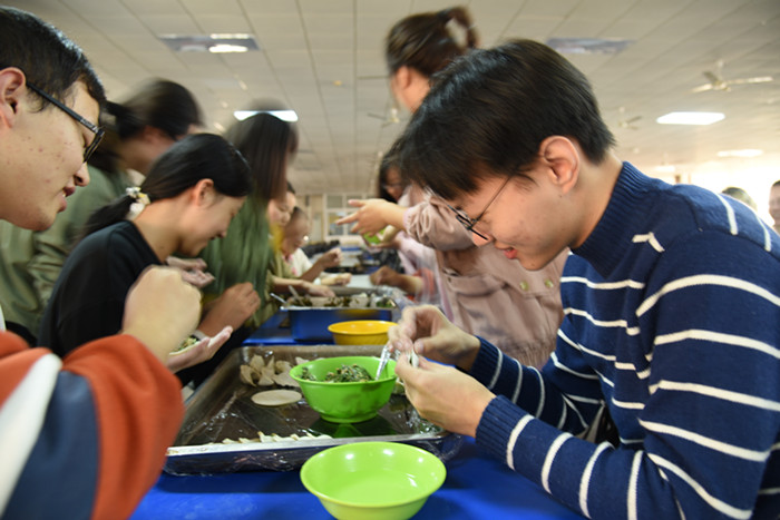 深秋渐寒,秋叶萧瑟。31日下午3点半的二食堂二楼却格外的热闹与温暖。2017级网络与新媒体专业在这里举办了包饺子班级团建活动。