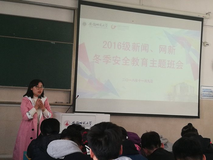 冬季是火灾易发多发季节。学生宿舍是学生生活、学习、社交的重要场所,安全工作不容忽视。为教育每位同学在冬季自觉做到用电安全、防范人身财产安全,11月9日上午,2016级新闻、网新专业于教学楼2030403教室召开了冬季安全教育主题班会,辅导员张雁主持会议。