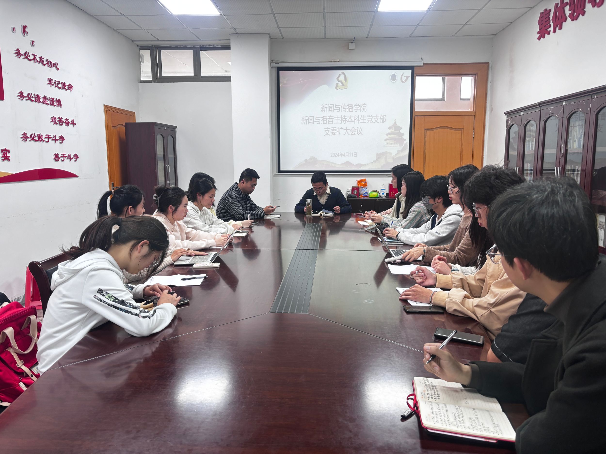 4月11日下午,新闻与播音主持本科生党支部在学院508会议室召开支委扩大会议。会议由党支部书记马星宇老师主持。