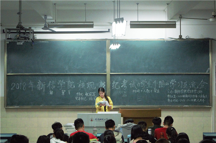 为确保2018级新生在校规校纪学习中更加高效,学院在第一时间下发了最新版本的学生手册。在10月份由院团委学习部组织,利用晚自习时间,为2018级各专业学生安排校纪校规指导,归纳《学生手册》重点,新生们在指导中将以往的考察重点和最新的条例改变用记号笔特别标注。新生利用闲暇和碎片时间背诵着“十不为”条例;晚自习也几乎都是全勤的记录,新生们都手拿《学生手册》认真背诵校规校纪。