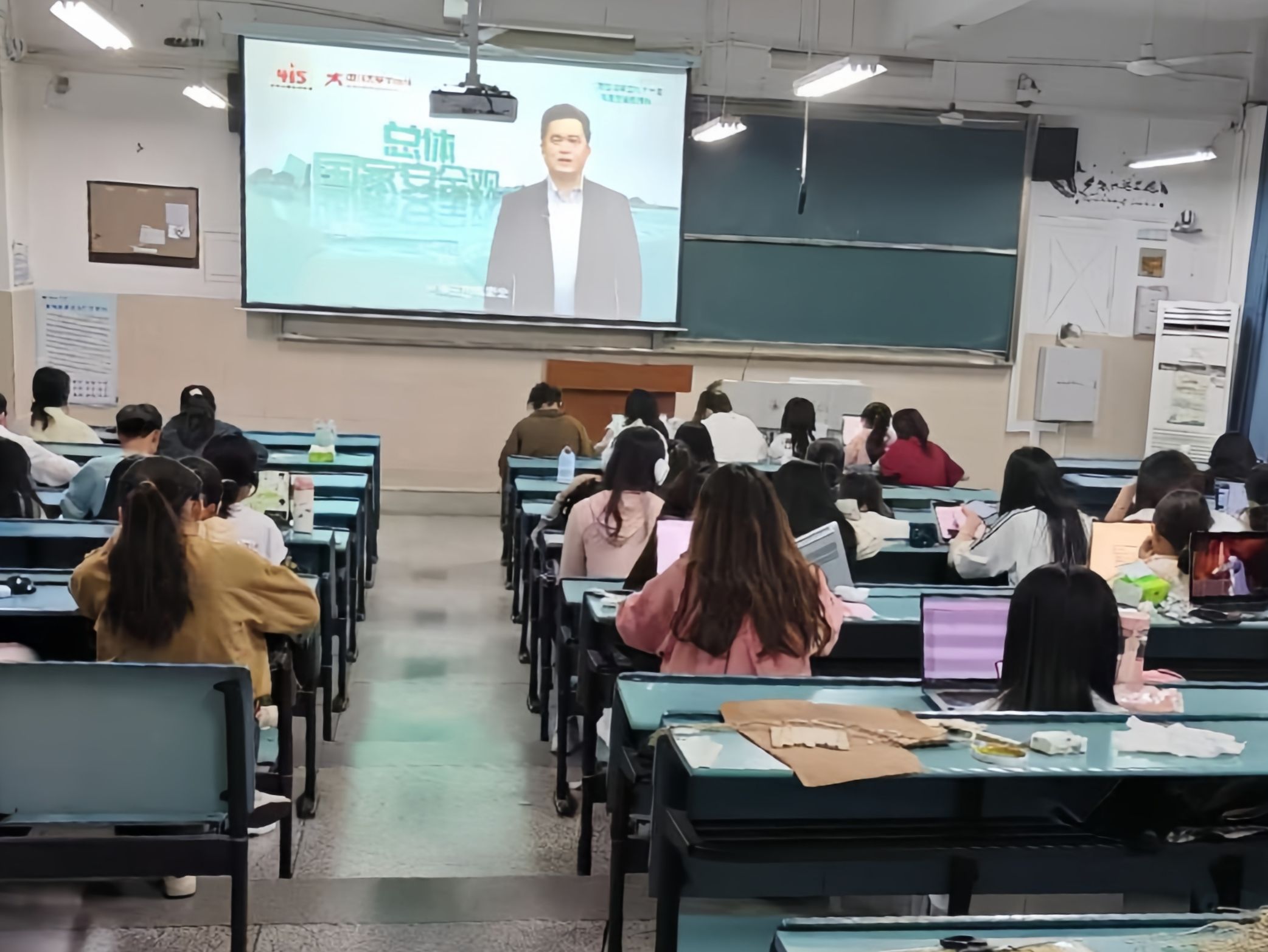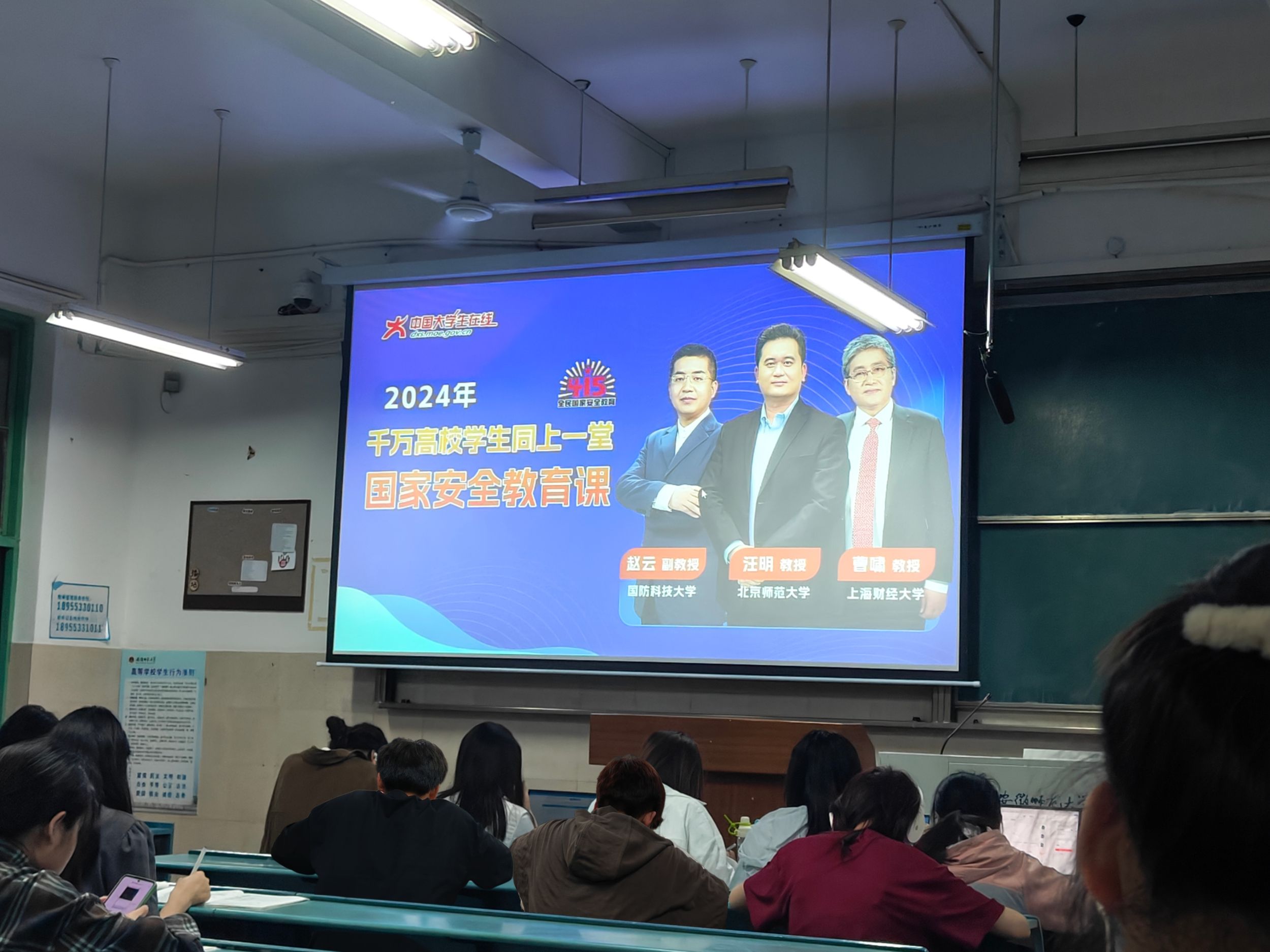 今年的4月15日为第九个全民国家安全教育日,为牢固树立总体国家安全观,加快构建新安全格局,4月14日下午3时,教育部通过中国大学生在线官网及中国大学生在线多个平台直播以“千万高校学生同上一堂国家安全教育课”为主题的公开课。4月15日晚,2023级新闻学专业在安全委员李波涛、白晶的带领下利用晚自习时间一同收看学习。