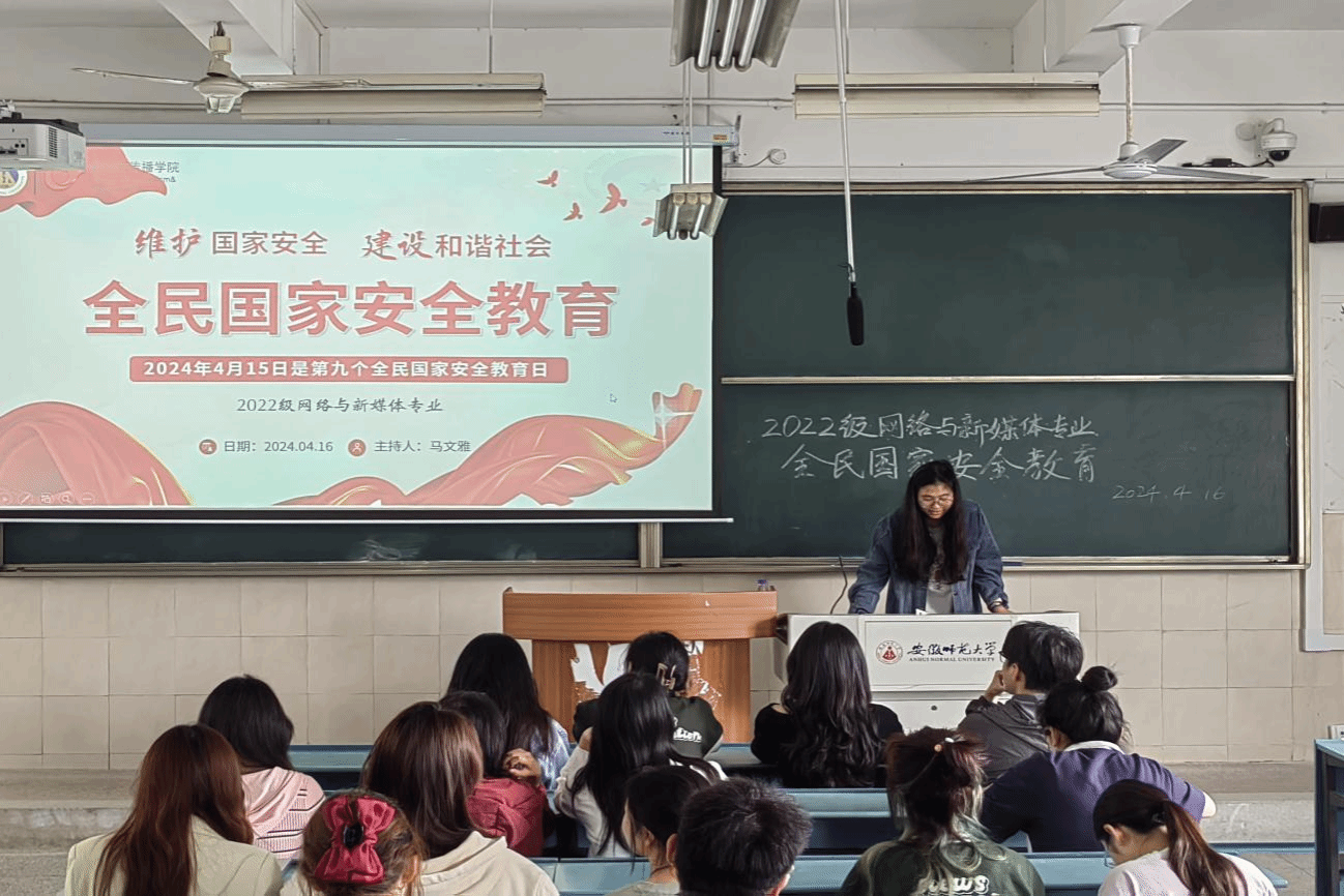 为贯彻落实总体国家安全观,增强国家安全意识,2024年4月16日,2022级网络与新媒体专业召开全民国家安全教育思政学习会,本次会议由思政委员马文雅主持,2022级网络与新媒体专业全体同学参会。