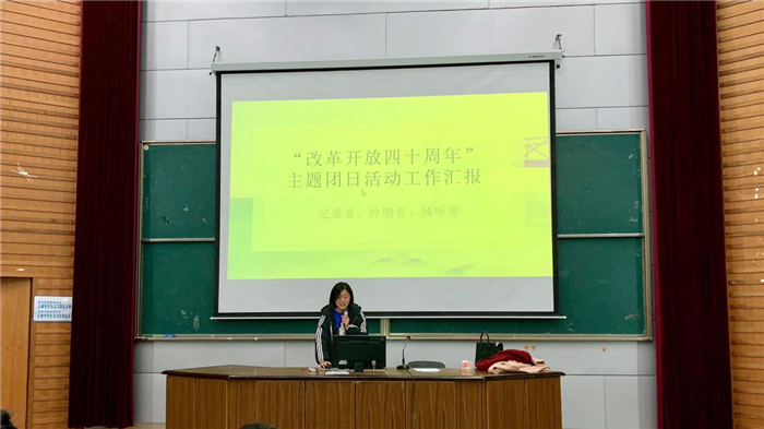 11月20号晚8:00,2017级新闻专业(含中英),播音专业在2010105教室召开了“改革开放40周年”主题团日汇报会,辅导员张虹主持汇报。