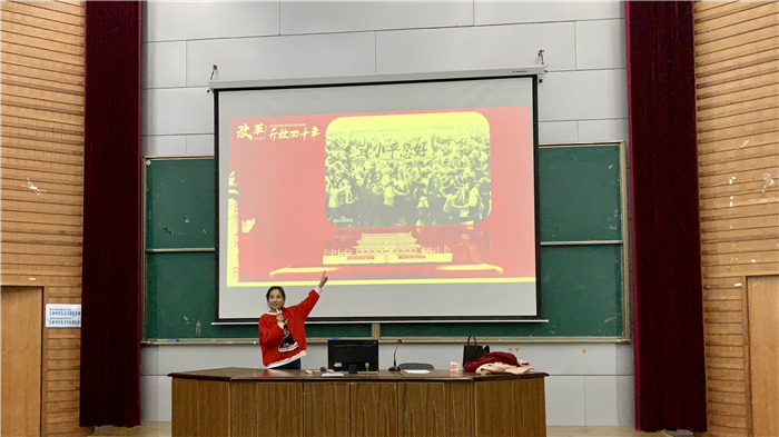 主题团日汇报会的最后,辅导员张虹和同学们共同纪念了改革开放的40周年,并带领同学们深刻缅怀了邓小平同志。张虹通过例举数据述说了改革开放至今的高考报考人数和录取率,更贴切的和同学们描述了改革开放是如何惠及教育,如何支持教育事业发展的。和同学们们分享了“小平,您好”的由来,鼓励同学们要学政治,懂政治,要像一代代改革开放的先驱人看齐,要努力学习,扎实专业,为改革开放事业贡献自己的力量,做新时代有为的大学生。主题团日汇报会结束后,同学们表示:觉得自己更有力量了,也渐渐明白我们作为大学生该承担的责任和义务,要不忘初心,砥砺前行。